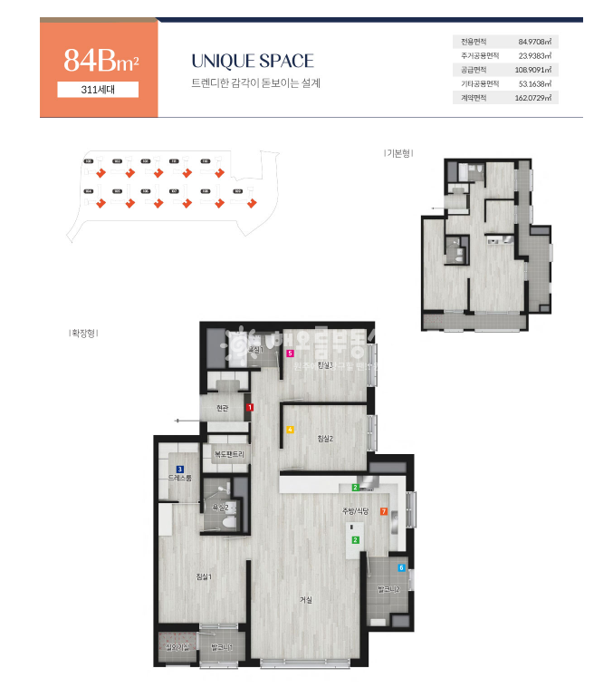 공급 108.9091㎡ 33평 / 전용 84.9708㎡ 26평 (전용률 78%) 평